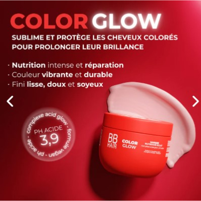 Le Masque Nutrition Éclat COLOR GLOW est conçu pour sublimer les cheveux colorés et méchés en prolongeant l’intensité des pigments.